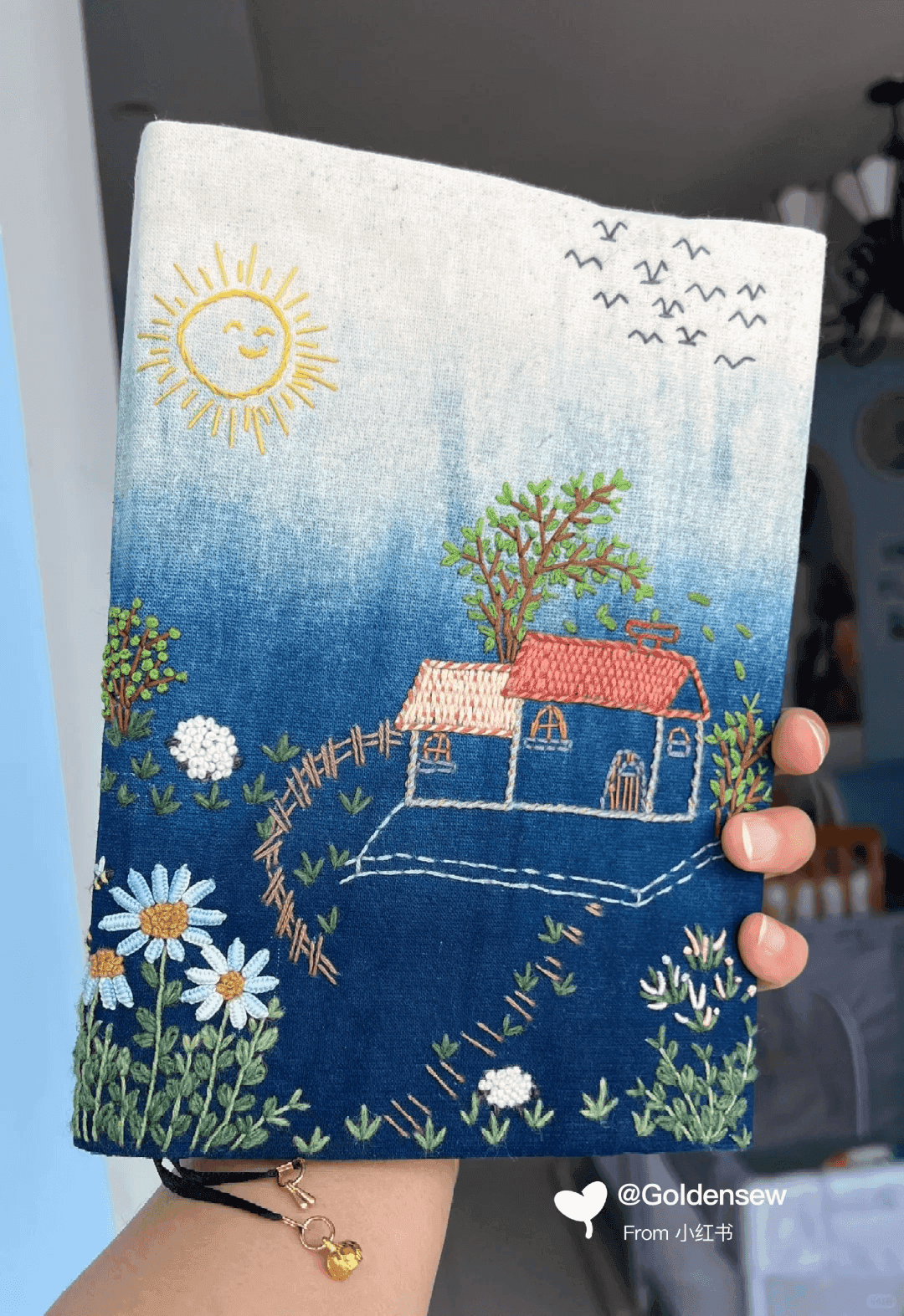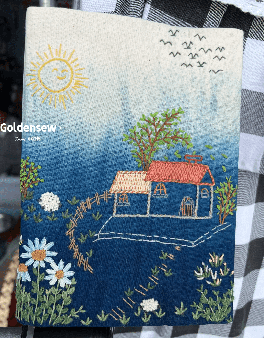成品书衣来啰,一副粗糙的田园风景画。